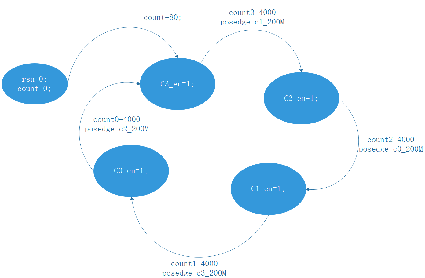 步骤一:通过FPGA的锁相环LLP将FPGA中内置的时钟信号分为相角差各位90度的四路时钟信号,这样四路时钟信号产生一个很小的△以得到一个很高的精度。