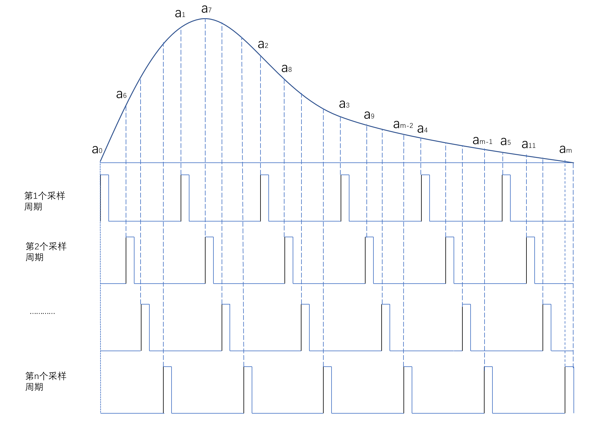 多脉冲合成的超短脉冲高精度回波重构技术中最常见的方法就是等效采样法,如数字示波器核心技术之一就是等效采样。相比实时采样,等效采样技术可以大大提高等效采样率,减缓了硬件实时采样率及数据存储速率和存储容量的压力。这种方法可以使低速的A/D转换器采样那些频率超过香浓采样定理所规定的信号。等效采样法相比于传统的采样方法,其往往以牺牲更多的采样时间为代价,来获取周期信号在一个周期内尽可能多的采样点,已达到后期可以高精度还原被采样信号的目的。等效采样法主要分为两类,分别是顺序采样法以及交错采样法[7]。