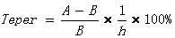 倒锥度和开口度是对结晶器进行测量评估的两个重要参数。如下图1.2所示,梯形的上底宽度A即结晶器的开口度。倒锥度分为左(右)侧倒锥度和Teper倒锥度[13]。前者是指左右侧边和垂线之间的夹角。如果设结晶器的上底宽度为A,下底宽度为B,高度为h,此时倒锥度Teper为: