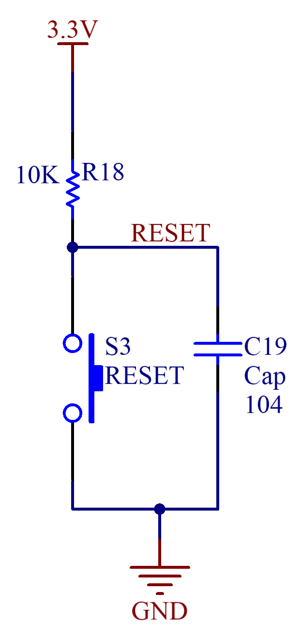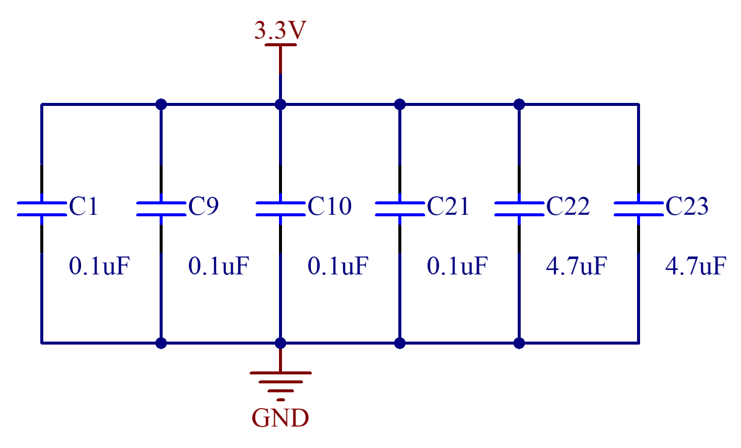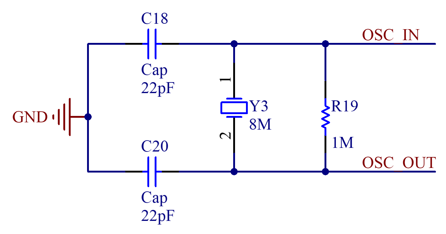 STM32最小系统模块的电路主要包括晶振电路、复位电路和滤波电路等几部分电路[6],如图3.2所示为STM32的晶振电路,晶振的功能是为系统提供合适的时钟信号,一般情况下系统会共用一个晶振,方便各部分同步,STM32的OSC_IN和OSC_OUT脚会产生谐波,为了削弱谐波的不利影响,采用两个22