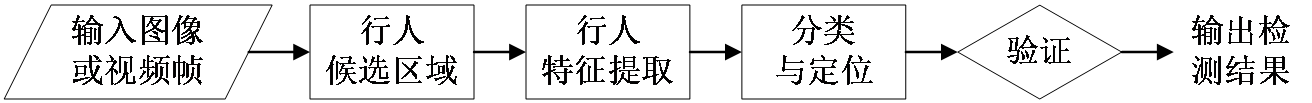 第2章,将实现行人检测的过程分为几个模块,并分别对各个模块的发展做简要概述。