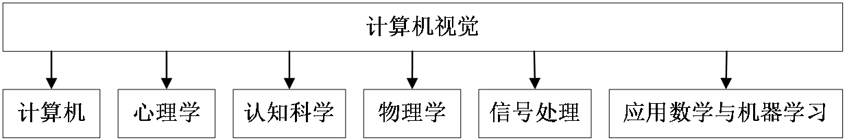 行人检测是计算机视觉技术的经典应用,计算机视觉是采用摄像机获取图片或视频信息并使用计算机对其进行处理的一门新兴学科。让机器具有主动感知认知的能力是人类多年的梦想。计算机视觉不仅要达到感知物体的形状 、位置、姿态等几何信息,还要对它们进行描述、存储、识别和理解。计算机视觉是多学科的交叉与结合,如图1.1所示。