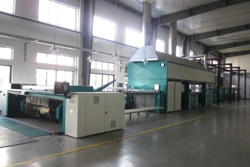 3、烘干装置:包括烘房和烘筒,对潮湿的浆纱进行烘干,形成完整的浆膜并达到工艺要求的回潮率。风机的温度一般70~80℃。