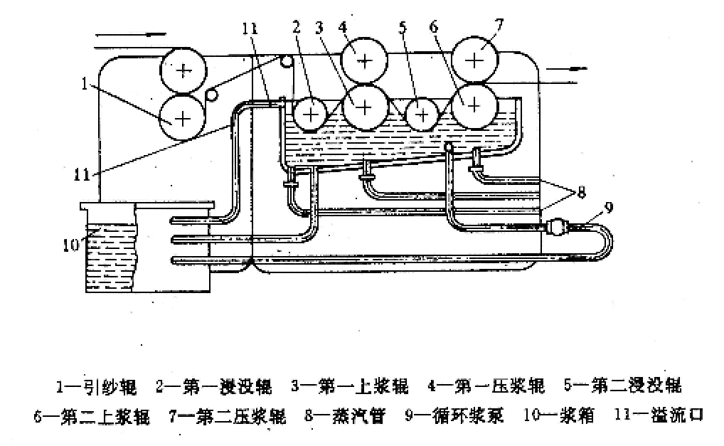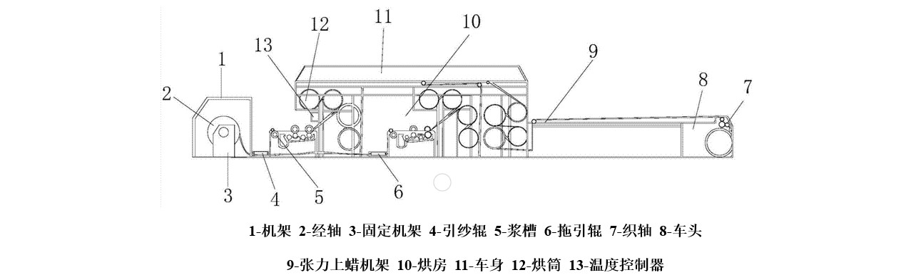 浆纱工序主要由浆纱机完成,浆纱机的主要机构及作用如下: