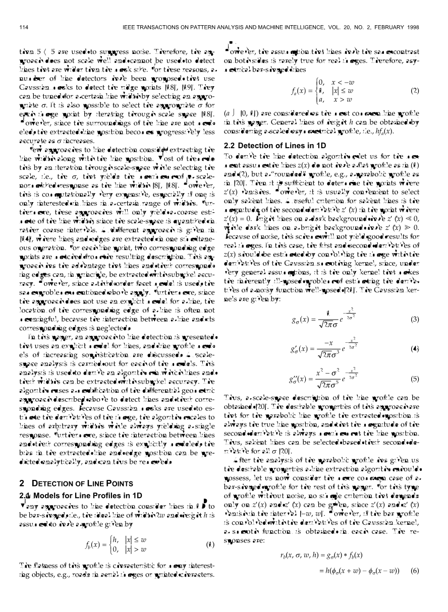 许多线检测方法认为一维中的线是条形的,即则假设宽度2和高度的理想线轮廓为