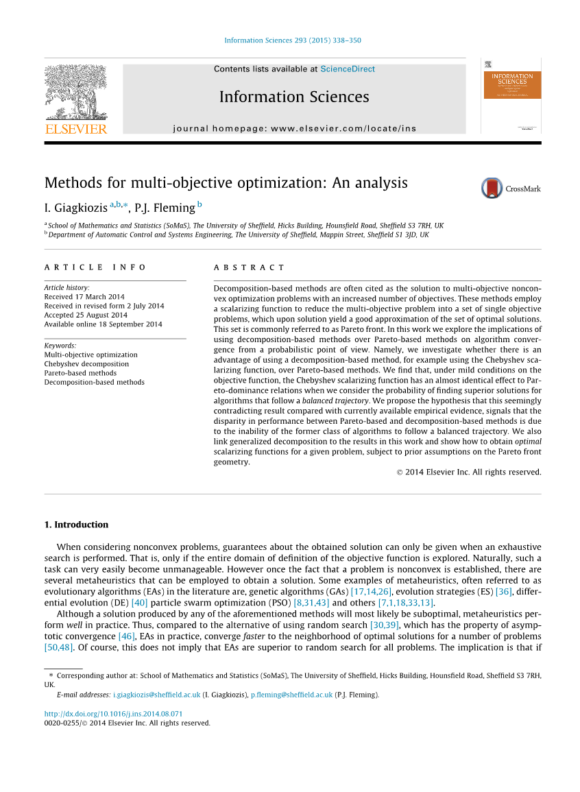 ·并且研究了基于分解的方法,阐明了它们与优势度方法的关系。一个主要的结果是在某些假设下基于切比雪夫标量函数的方法与基于Pareto优势的方法是等价的,而这些假设在基于分解的算法中通常易于满足的。