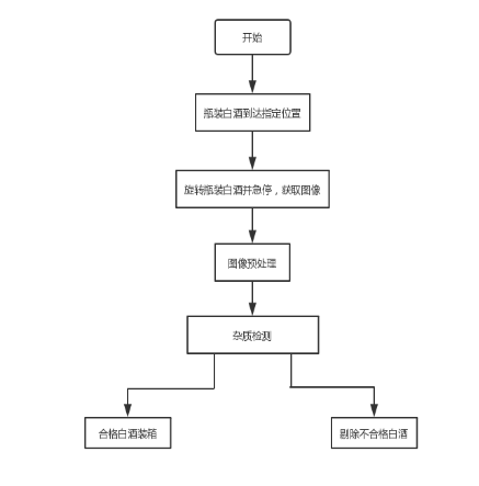 方案二:先对瓶装白酒拍照,然后利用数字图像处理的方法,对获取的图像进行预处理并用杂质检测算法判断白酒中是否有杂质,在检测出杂质时报警和剔除不合格白酒。