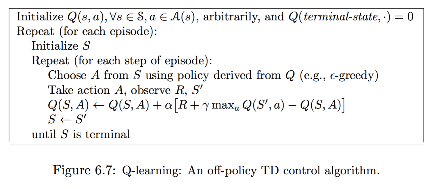 这里直接使用最大的Q来更新。SARSA是on-policy而Q-Learning是off-policy是因为SARSA只是对policy进行估计,而Q-Learning的Q则是通往最优。