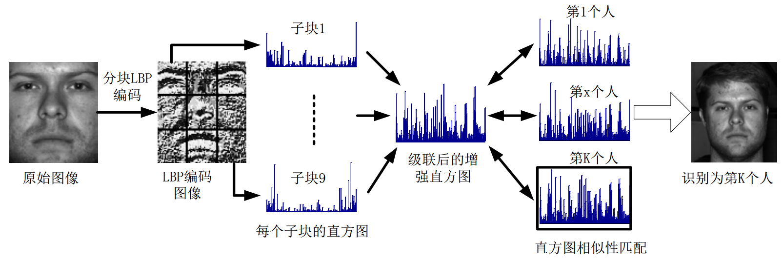 通过阅读参考文献和比较国内外学者的研究方案,本论文中把人脸识别的过程分为了如图2.1所示的四个步骤: