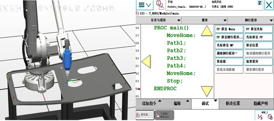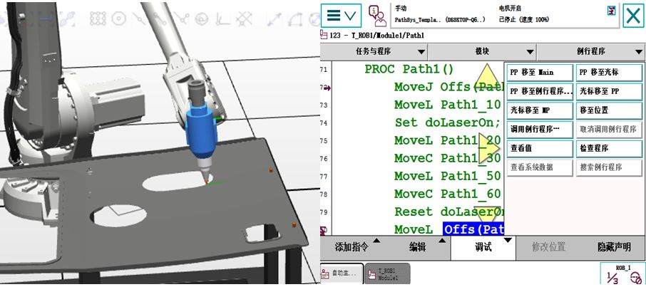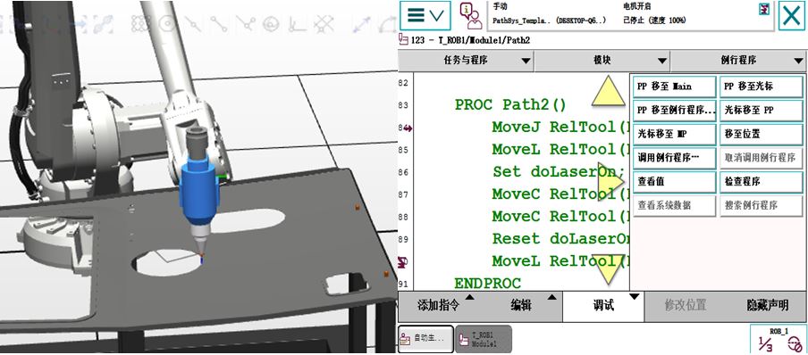 MoveC Path3_150,Path3_160,v200,z5,tCutTool\WObj:=WobjDoor;
