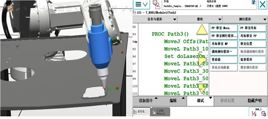 MoveL Path3_50,v200,z5,tCutTool\WObj:=WobjDoor;