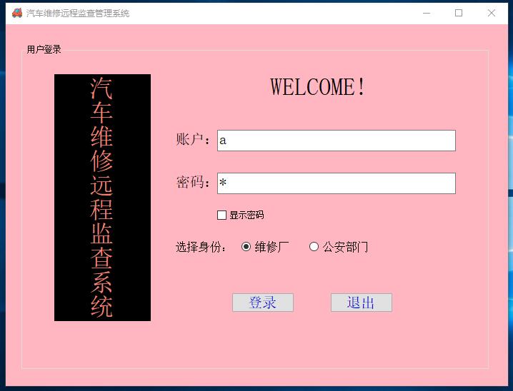 该模块主要用于公安部门完成日常事项登记,例如:问题车辆登记、管理员、维修厂登记、系统维护、退出。