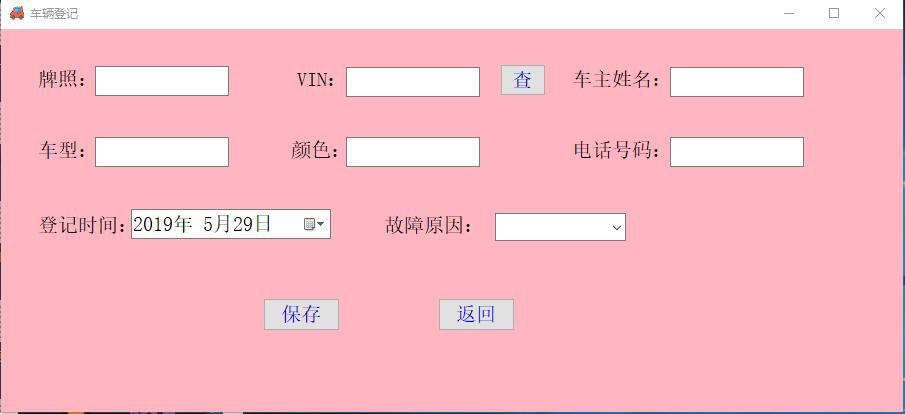 该模块主要用于维修厂记录进场维修的每辆车辆的具体信息,例如:车牌、VIN、车主姓名、车型、颜色、登记时间、故障原因。