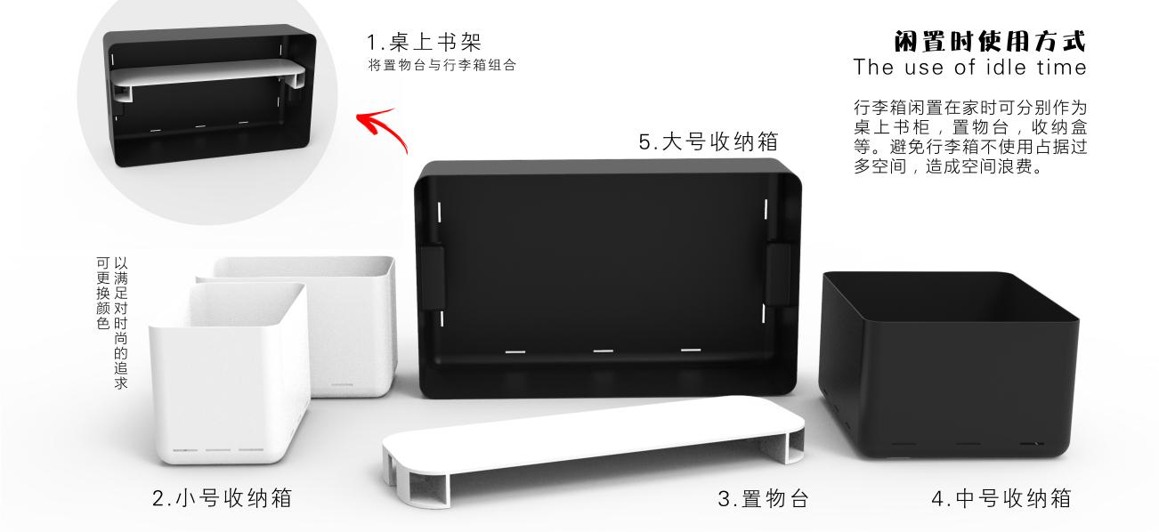 租房人群的居住空间普遍偏小,那么如何能够提高空间的利用率与自身的生活体验是租房人群时常需要思考的问题。因此,行李箱在不使用时的空间规划再次利用的问题在之后的设计中应该着重考虑。