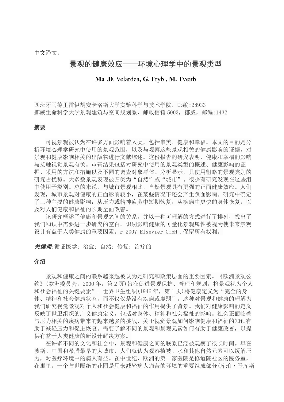 附原文:Health effects of viewing landscapes – Landscape types in environmental psychology