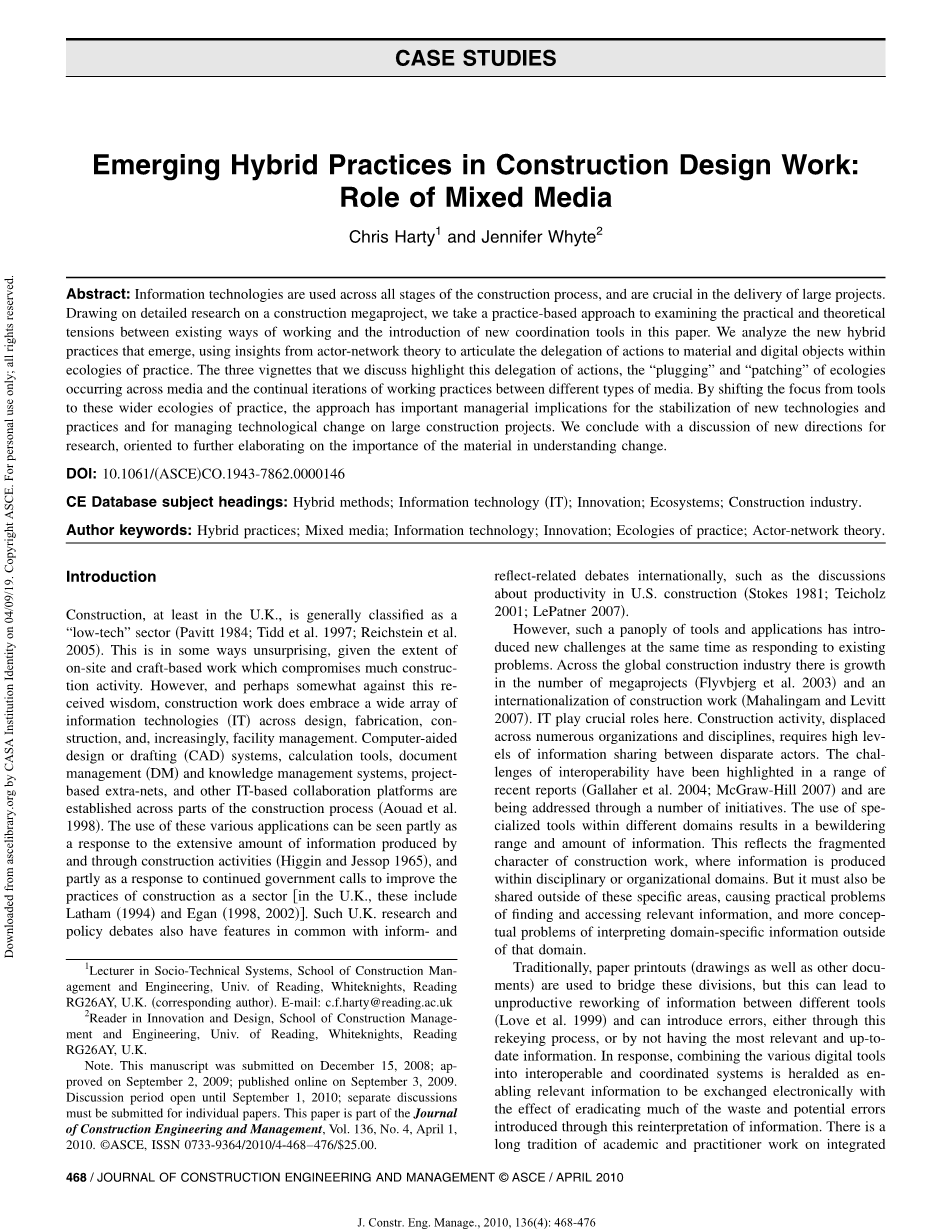 研究为什么尽管试图删除或替换某些特定工件(如paper),但围绕它们的一些实践仍然存在,可能会有效地考虑到这些工件所扮演的特定角色。在动员纯粹的社会实践帐户时,这可能是困难的。但是,通过将实践定位为从相互联系的人与物质的行动者网络中产生或通过行动者网络构成的,可以发展实践的社会技术说明,考虑到它们的混合构成。它允许更多的生态或包容性的解释,新兴的做法,以产生明星和Griesemer 1989,这不仅考虑社会和结构方面,而且还考虑到材料组成部分。此外,网络可以超越当前的本地环境,从而考虑到对新兴实践的更广泛的专业、纪律和制度影响。在这两个方面的基础上,本文的其余部分阐述了大型建设项目在设计和施工阶段这种“实践生态”的形成和出现。