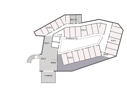 间,用单体进行分割空间,形成小体量的储藏间和居住空间。这些空间具有较强的灵活性和多边性。