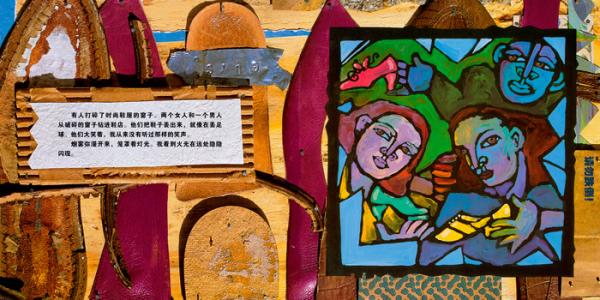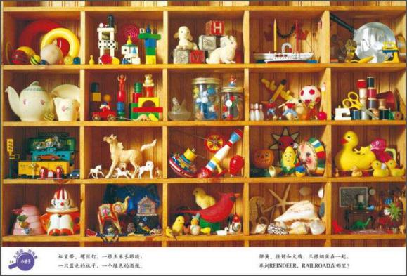集成艺术品是通过日常可见的一些物品组合拼接制成三维立体形象后通过摄影来制成的插图,利用该手法的绘本作品有珍妮·贝克的《家园》,还有《I SPY视觉大发现》(图2.9)系列启蒙认知书籍等。