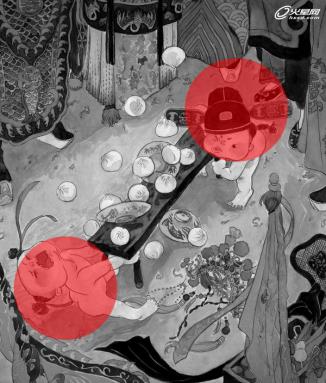 - 放射式构图(图3.7):以画面的中心向四周扩散,冲击力强,视野开阔舒展。我在绘本的第四幕中使用了放射式构图,突出了下坠的女孩形象,背景是远处的棉花糖迷宫等,该构图使得画面空间感和冲击力更强了。