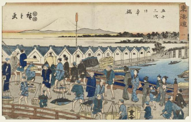 3-1-1 料理茶屋 3-1-2日本桥上挑着担子贩卖鱼