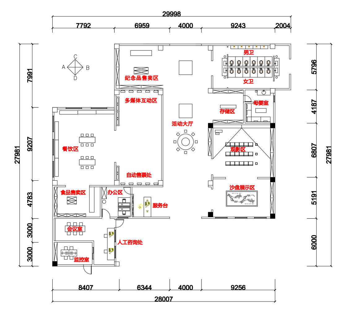 为游客提供服务、展示和管理是接待中心的主要功能。主要功能形成主要的体系结构,由此在接待中心的空间划分上才能分离出功能组成、平面构成和空间划分。建筑设计中除了要满足于功能上的需求,整个建筑环境要足够的通畅、便捷,温度适宜和丰富的室内外环境。