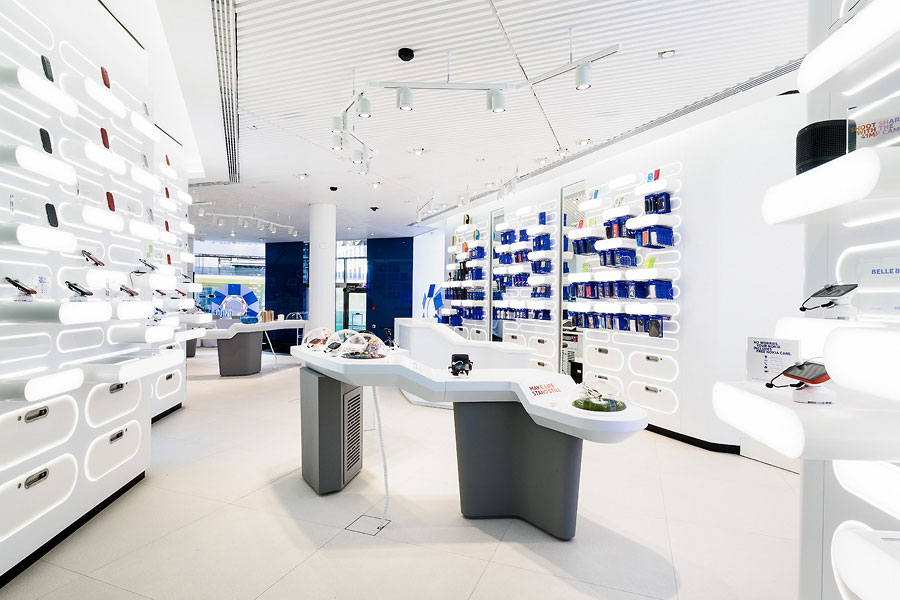 当今展陈方式和互动技术的发展,使得人们不但能通过商场的货柜陈列来了解展品,而且能通过现代展示设计手法和多媒体技术进一步了解自己心仪的商品。所以展厅展示已经成为现代商业展陈中较普遍一种展示方式。从商业展示效果上看,展厅相比其他的传播方式而言,更加的直观和有效率。毕竟购买者在消费前想要看到的不仅仅是商品本身,而是希望得到更加多元的感官刺激和更人性化的服务。他们倾向于通过观看、倾听、触碰、尝试等体验方式来全方位了解产品,再决定是否购买。有良好设计水准的企业展厅是一个集信息传播、品牌理念、品牌价值于一体的综合性商务空间,它不但能体现企业整体的价值取向和定位,也表达了企业整体的精神内涵和企业优秀的代表性产品。据此,本案的“天空之城”深圳大疆企业展厅综合使用展示设计的艺术处理手法,整体提升和改进展厅及展陈道具的整体设计,向体验者展现出大疆产品的品牌价值和特有优势,糅合多媒体等高科技展示形式,融合互动式参观体验,实现信息的有效传达,让参观者更大程度被大疆的魅力所吸引,并且最终实现最终的购买。
