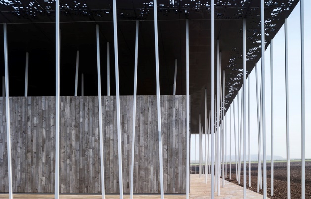 在此次游客接待中心建筑外观形象的设计构思中,力求用丰富的想象力和创造力以及极具个性化的设计理念,充分结合当地的文化历史背景,使得该建筑外观的整体形象在尽可能展现其独特与新颖的同时,又能够与周围的建筑完美和谐的融入。在材料的选择上既与时俱进,又合理的运用了当地的特色材料。同时,建筑外观的设计与配置也进行合理的人性化规划,在满足其创新性的同时,不断增强其建筑本身的个性化,通过将新建筑工艺与旧历史文化充分结合在一起,使得游客在感受到高品质服务的同时,又能保留乡村最美的生态环境。建筑整体的色彩以舒适温馨的木纹为主基调,加以大面积的玻璃幕墙。注重游客与环境之间的交流,使游客即使身处室内也恍若置身于大自然中。建筑外观形象及其周边的环境规划在整体上围绕以人为本的设计理念,让游客能够更加贴近大自然,更好的体验乡村慢生活,远离城市的喧嚣拥挤。