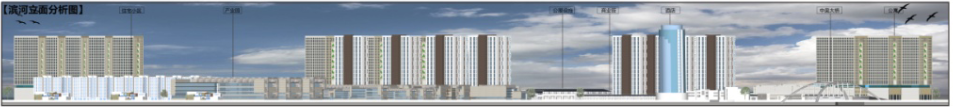 由于商业街和运河五号的存在,整个“T”字型的构造,在高度上虽然并不高,多是低层建筑,但是密度上非常高,而且算是整个地块非常能够吸引人气的一个地方,具有一定的人流吸引力,所以参照上海新天地的模式,在两边都建造了大量的高层建筑,虽然“T”字型地块没有很好的吸金能力,但是两边的高层住宅楼可以很好的弥补中间公用地块的经济损失。运河五号创意街区与北侧的城市公园连接构成了一条南北主轴线,很好的串联了整个地块,在居住区以及广场等地方因地制宜的规划景观中心,整个地块就形成了景观绿地体系。