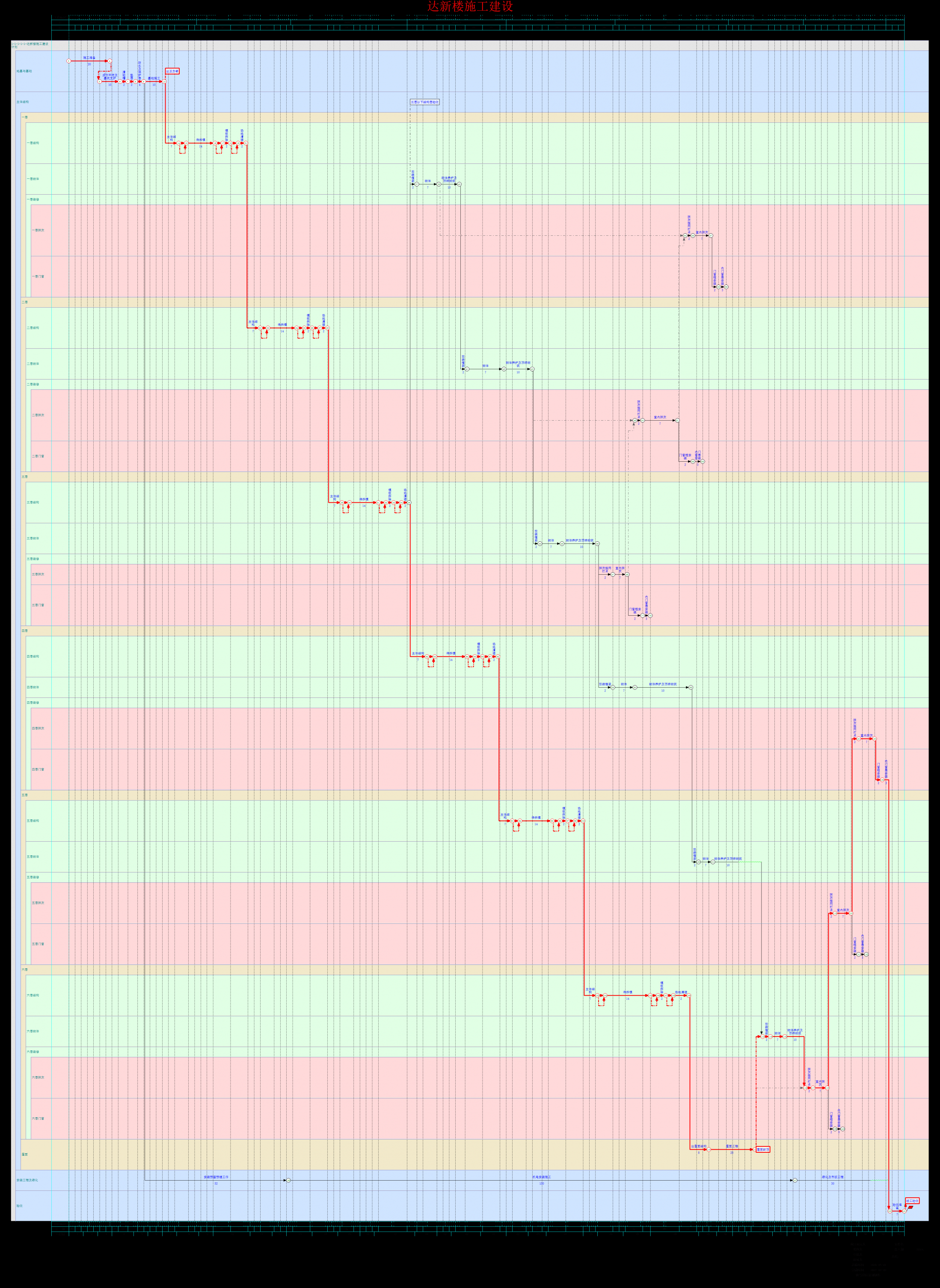 达新楼工程中后期有多种工程配套施工,需要安装工程、装修工程、门窗工程相互穿插平行施工,穿插施工难度较高。总体协调、相互配合要求高;