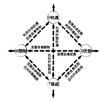 所谓SWOT分析法,是对研究对象四个方面的影响因素(S、W、O、T)进行分析,其中S表示研究对象自身的优势(Strength),优势指研究对象具有的稀缺,排他,权威性的因素,如充足的财政来源,高精的技术,优秀的团队,该优势是影响决策制定最重要的因素;W表示研究对象自身的劣势(Weakness),劣势分核心劣势和非核心劣势,核心劣势需要加大力度追赶,而非核心劣势可以适当规避;O表示研究对象的外部机遇(Opportunity),外部机遇具有时效性,不同的时段具有不同的机遇,故制定决策时应该抓紧机遇;T表示研究对象的外部威胁(Threat),外部威胁同样具有时效性,故遇到威胁时,应及时做出调整,以免造成不必要的浪费与损失。