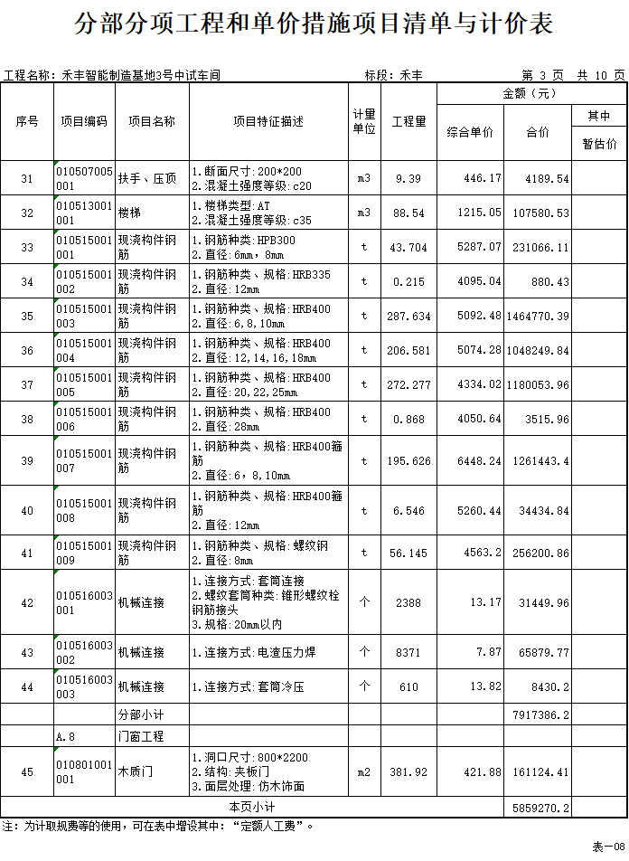 3.1分部分项工程和单价措施项目清单与计价表 9