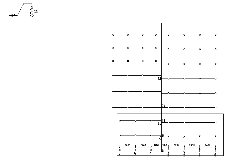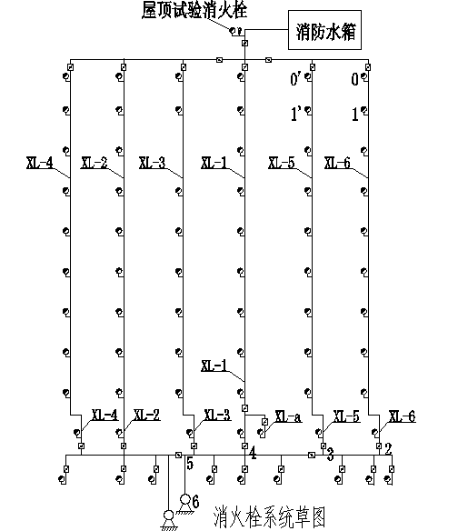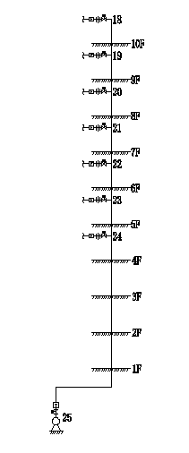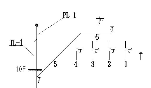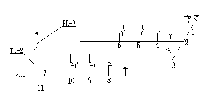 The water supply system adopts the method of vertical division and parallel connection, which leads two pipes into the building from the municipal pipe network, the negative one floor to the ground five layer is directly supplied by the municipal pipe network, and the six to ten stories are supplied by pressurized water supply equipment without negative pressure frequency conversion water supply equipment. The building belongs to the second-class high-rise civil building, the fire resistance grade is two, the outdoor hydrant water consumption is 40L / s, the indoor hydrant water consumption is 20L / s.