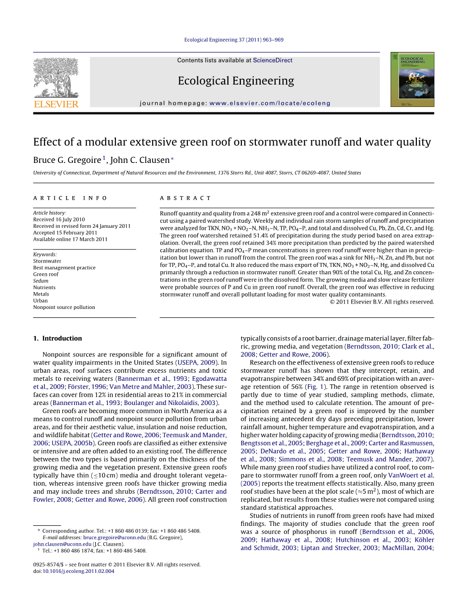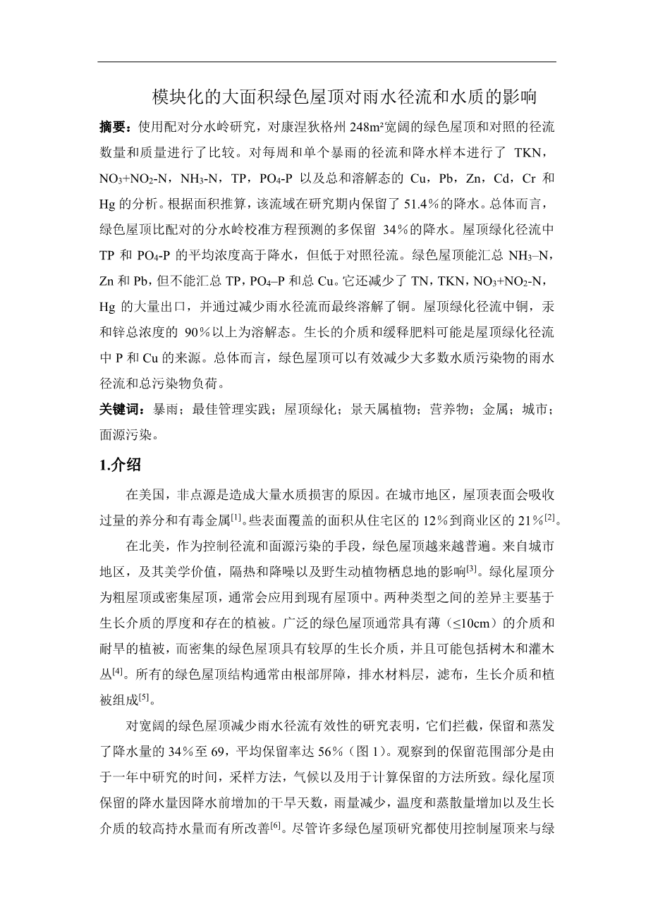 模块化的大面积绿色屋顶对雨水径流和水质的影响外文翻译资料