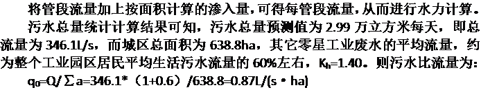 其它污水量是指地下水渗入量。静止水位埋深5.0m左右。地下水渗入量确定为:600m3/km2·日。