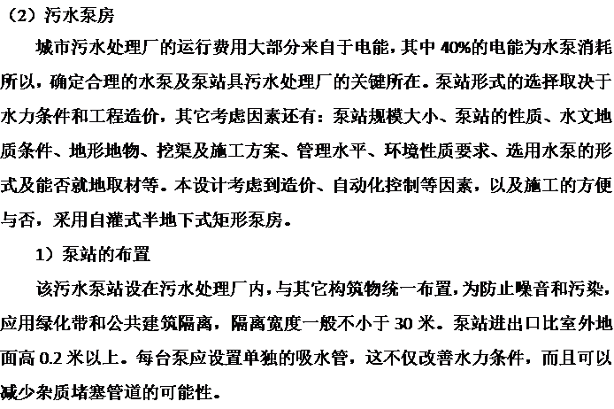 (3)污水管道坡降尽可能与地面坡降一致,以减少管道埋深。