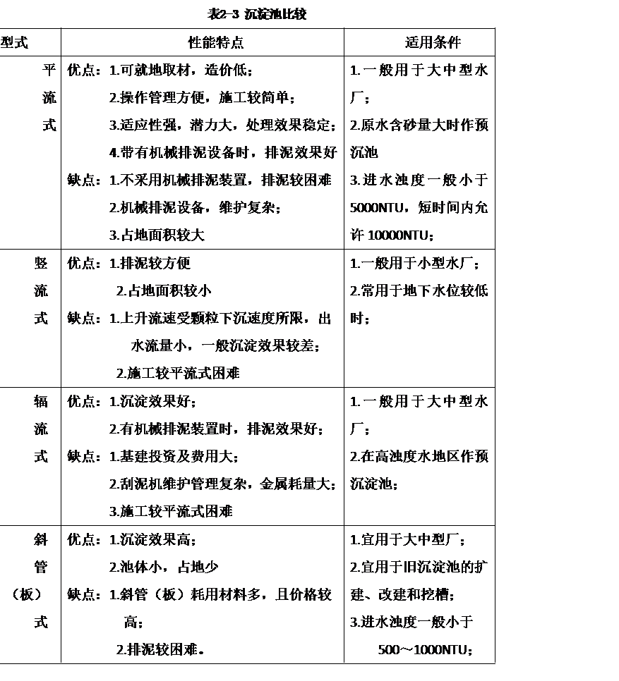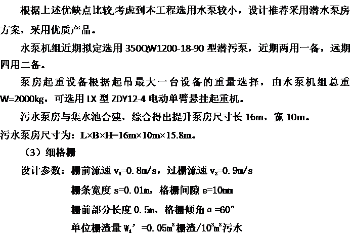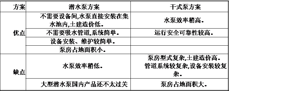 进水泵房形式有两个方案可供选择,潜水泵房方案和干式离心泵房方案。两个方案的优缺点比较见表2-2所示。