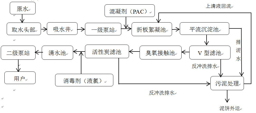 (2)完成给水系统方案选择及各工艺构筑物的设计计算,并绘制出相应的计算草图。
