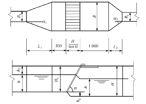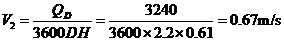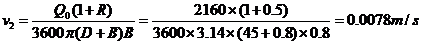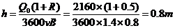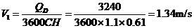 ,栅前流速v1=0.75 m/s,得:h=1.09m