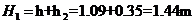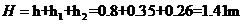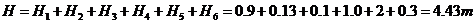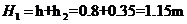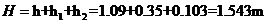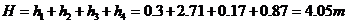 H= h1 h2 h3 h4 h5=3.125 0.3 0.3 0.515 0.857=5.1m
