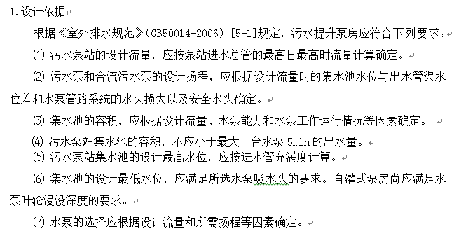 污水处理厂的最大设计污水量Qmax=1.8m3/s。集水池和机器间分开,吸水管和叶轮被水淹没,内设机修间与值班室。泵站地下埋深为6.1m,其中基础为0.9米,水泵采用自灌式。