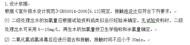 (4)复核池容 由以上计算,接触池宽B=3×3=9m,长L=54m,水深h=3m