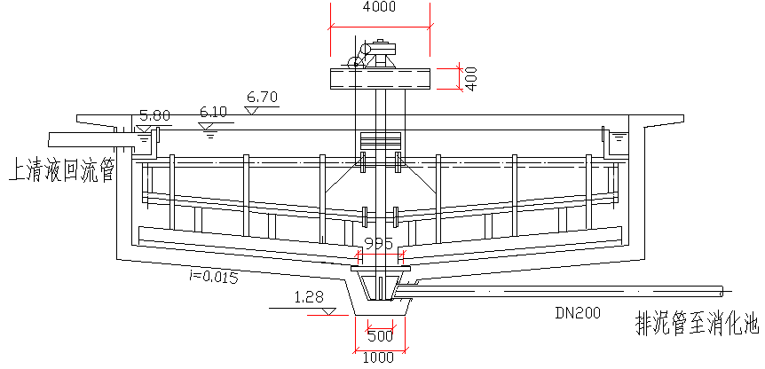 回流水量为0.0697m3/s,设回流管管径DN200mm,管内流速v=0.594m/s。
