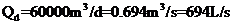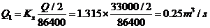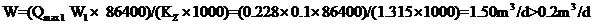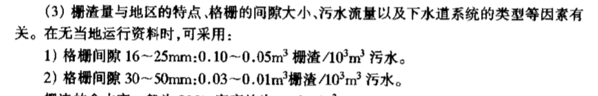 (2)因为格栅间隙为20mm,所以取栅渣量为;