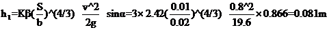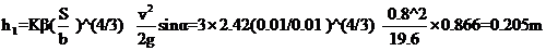 (9)栅前水深h1=1.50m(前面算出的有效水深)