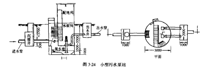 设污水厂地面标高为23.8m,污水渠最低水位为21.1m。