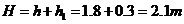 因为进水渠应高出地面0.1m,且进水渠的底面标高为污水渠最低水位以下1.5m,,则进水渠总深度: