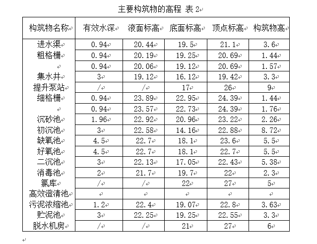 4.2.3主要构筑物高程 39