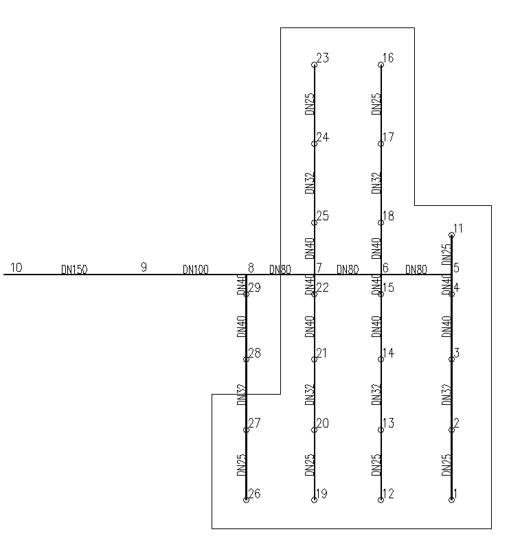 本次设计为镇江市长陵办公大厦给排水设计,活排水设计、消防给水设计、消火栓系统设计、自动喷淋系统设计、雨水排水设计。该建筑为二类高层公共建筑,地上十层,地下一层。地下一层设有泵房,泵房内布置消防水泵和喷淋水泵为消防系统供水,设置无负压供水装置为办公高区供水。办公楼每层有两个卫生间,两个卫生间各设一根立管排水,考虑到卫生间卫生器具较多,每层卫生间均设环形通气管,并在横管起端设置清扫口。雨水使用内排水系统,屋面根据汇水分区设置雨水斗,不上人屋面设置侧墙雨水斗将雨水散排至上人屋面,再由雨水斗收集。