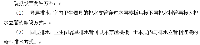 伴随同层排水技术的不断深入学习,发现同层排水技术在性能上比隔层排水技术更为先进,它明显突出社会以人为本的原则,虽然在具体实施上具有一定的困难,但是如果施工单位可以严格按照图纸来进行相关施工,遵循相关施工规范,再结合同层排水系统新产品的不断研究,进步,相信在不久的将来,同层排水技术将广泛运用于现代住宅中,故采用同层排水。