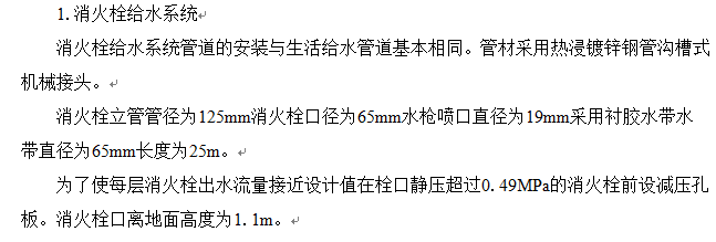 关键词:给水系统;消火栓系统;自动喷淋系统;室内排水系统;雨水系统